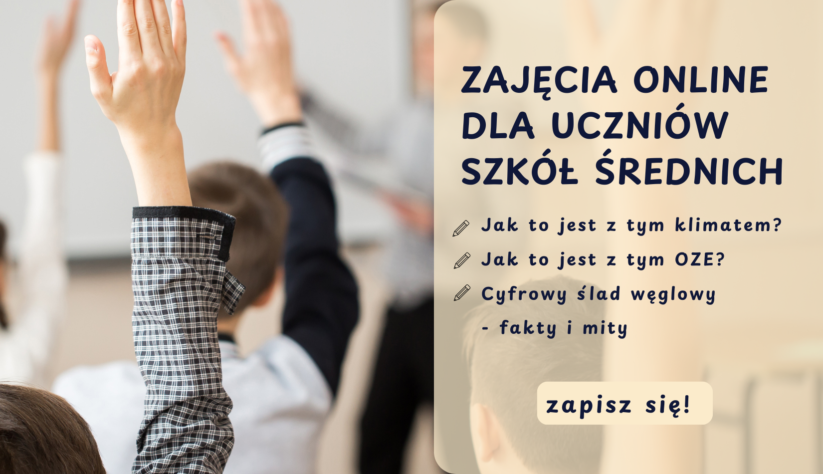 Zajęcia online to nie tylko dawka aktualnej wiedzy, ale również praktyczne wskazówki, jak każdy z nas – także młodzież – może wpływać na poprawę stanu środowiska. To okazja, by zdobyć argumenty potrzebne w codziennych rozmowach, a także by świadomie podejmować decyzje dotyczące korzystania z energii i nowych technologii. Można zgłaszać klasy na cały cykl lub na wybrane tematy.