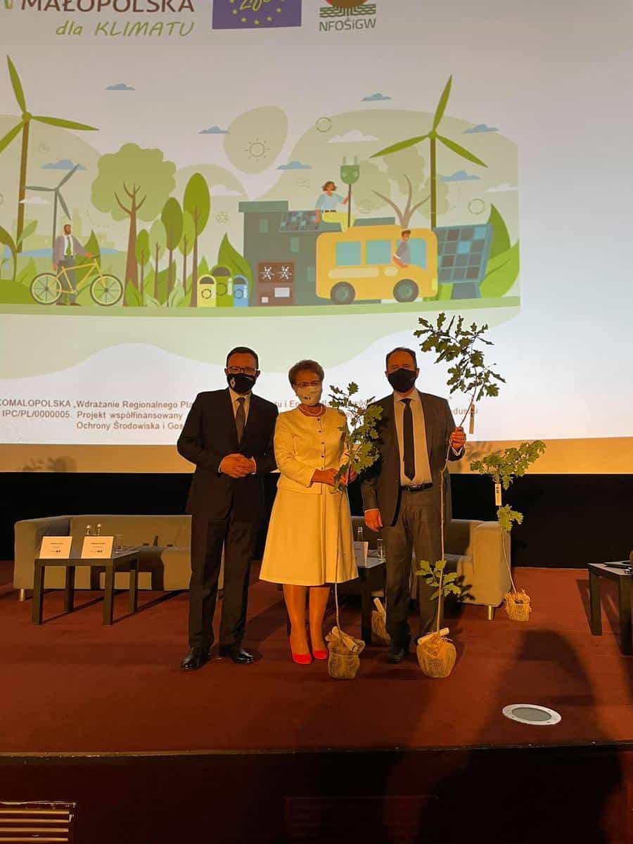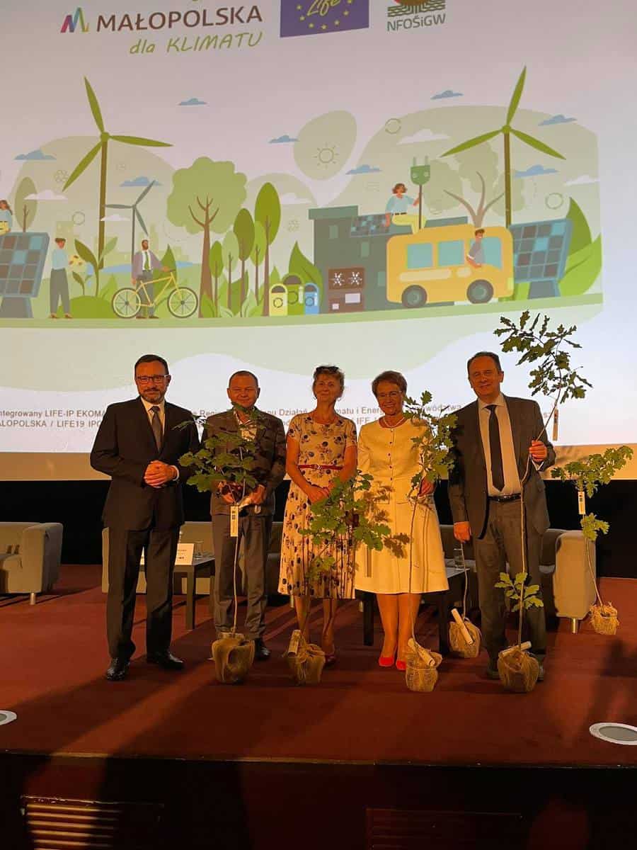 Zwieńczeniem spotkania była inauguracja akcji #drzewadlaklimatu. To pierwsze z szeregu zaplanowanych w projekcie działań informacyjno-edukacyjnych. Partnerzy projektu otrzymali symboliczne dęby, które zostaną posadzone przy ich siedzibach . Jesienią tego roku w całej Małopolsce odbędzie się szeroko zakrojona kampania, której celem będzie przybliżenie mieszkańcom tematu postępujących zmian klimatu.